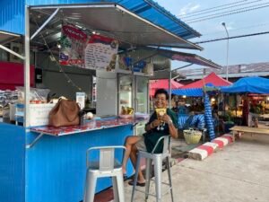The stall owner is friendly and very chatty, making it the perfect place to strike up a conversation and get a glimpse of local life. The area outside the shop tends to be busy with people at that hour, but it never feel crowded, which makes the whole experience relaxed and enjoyable. Sitting there, enjoying my simple but delicious meal, I feel completely immersed in the everyday rhythm of Rayong, and it’s moments like these that make the trip truly memorable.